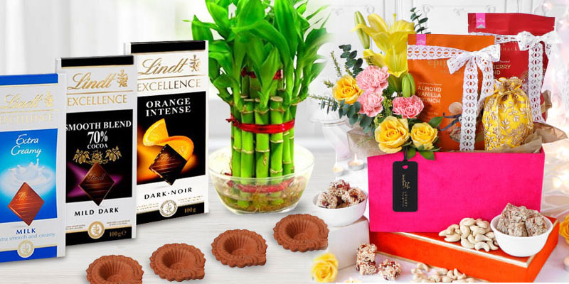 The lip-smacking sweets, the aroma of flowers, the courtyard decked up with twinkling diyas, firecrackers sparkling in the sky, the sounds of Lakshmi puja, and the dazzling lights on houses, shops, and streets, they remind us the greatest of Indian festivals, that is Deepavali. The onset of the festival from Dhanteras to Bhai-Dooj brings the Indians together, wishing success, joy, and prosperity to everyone around. The exchange of gifts and purchase of clothes and diyas keeps the markets busy for many days. These days, festive gifts are aplenty with the online marketing platforms. Do you think Diwali gifting is expensive? Click on our shopping site and get stunning Gifts to India combos at the lowest prices. Avail all the goodness of the great products with special hampers including sweets, dry fruits, puja thali, and silver-plated Laksmi-Ganesh coin at the cheap rates. Don't shy away from sending stunningpresents to your siblings residing in USA, UK, Australia or Canada, when you are getting them at the modest costs. We have exclusively curated affordable Deepavali presents without compromising on the quality, keeping in mind your low budget this year. We have remarkable collections of personalized hampers too. Send them at pocket-friendly budgets to your loved ones in Indian cities and abroad. ....