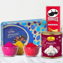 Celebrate Holi by sending this Enjoying Holi Hamper of Guruji Thandai n Herbal Gulal for Holi celebration to your family and friends. This Gift contains Gurujis Kesar Thandai, Gurujis Khus Sharbat with Gerbal Gulal (3 colour packets).