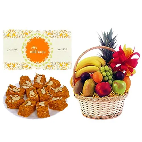 Buy Online to Send Akhrot Barfi (500g) from Mithas Delicious Sweets with 2kg Fresh Fruit Basket for your known N loved people. (Only Available at Pune)