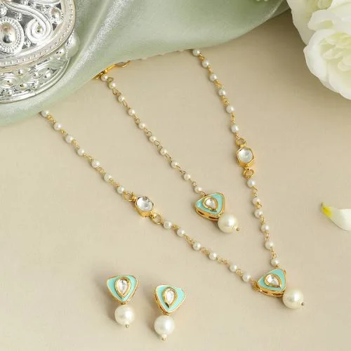 This gift set contains: • Green Heart shaped set with pop of green includng a Maang Tikka, Earrings, and a matching necklace