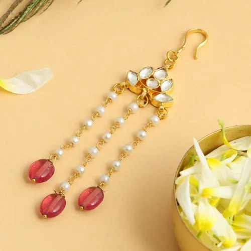 This gift set contains: • Floral-Inspired Hair Pin with Pearls and Dark Pink Bead Drops.
