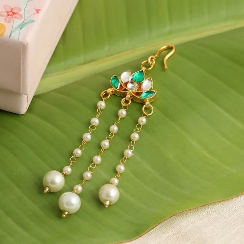 Adorn your locks with this Elegant Blossom Hair Pin featuring a floral gold-toned top embellished with delicate strands of pearls. Each pearl gracefully finishes with a subtle Dark Pink bead, adding movement and charm. The classic combination of soft white and striking dark pink exudes an elegance that is ideal for celebratory moments and traditional events.