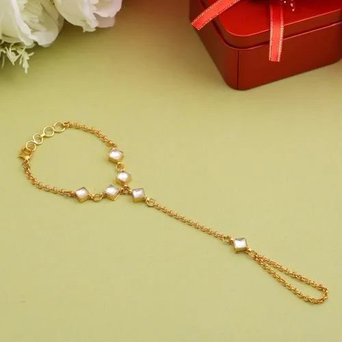 Experience effortless sophistication with this elegant gold hand adornment. Perfectly lightweight and versatile, it enhances any outfit with its minimalist charm. The delicate gold accents gracefully contour the hand, embodying a soft, feminine essence. Its timeless elegance ensures it is a staple accessory for any occasion.