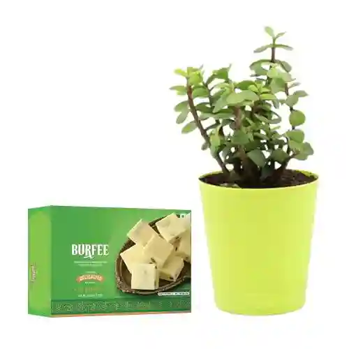 Malai Barfi with a Jade Plant in Plastic Pot