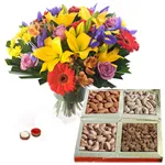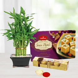 Dazzle your bhai on this event when you send this Kreitens Almond Toffee in Basket (250 g) with Silver Plated Paan Shaped Puja Thali and let them be overjoyed on this day with Free Bhai Dooj Tika N Chawal.