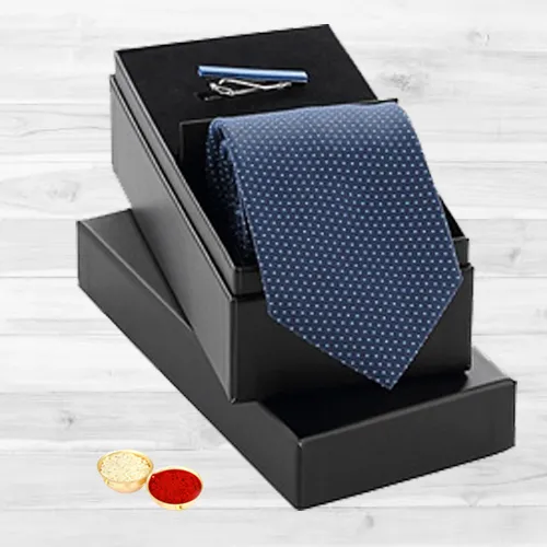 Convey in a splendid manner your heart-felt wishes on a feller’s achievement by presenting him this Fitting Charm Gift Pack for Gents and impress him with your caress. This Duo exhibits 1 Decked up regal Tie with 1 petite Tie-Pin with free Roli Tilak and Chawal