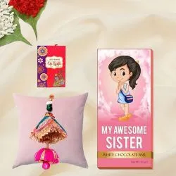 This is a gift of : • A Kundan Bhaiya Bhabi Rakhi Set (BBVL9527) • Complimentary Roli Tika N Chawal • Complimentary Message Card