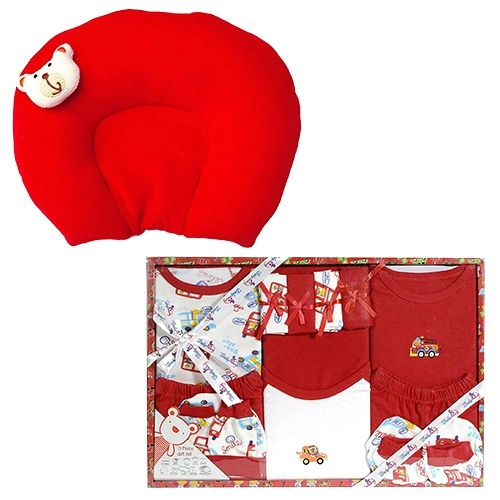 Send this Wonderful Combo of New Born Red Dress Set N Neck Supporting Baby Pillow to your beloved one as a gift and show your affection. This Combo comprises of: