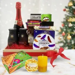 Feel great when you gift this Delightful Combo of Cookies N Chocolates and bring joy into the lives of the people you love on Christmas. This Combo contains 200 gm Crunchy Handmade Chocolates with 200 gm Seasam Cookies from Cookie Man in Tin Box, decorated in a Cane Basket.