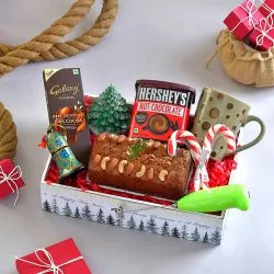 Indulge in the spirit of the holidays with our enchanting Christmas gift hamper, overflowing with delightful treats perfect for sharing with loved ones or treating yourself. Enjoy the crunchy Taali Nimbu Pudina Peanuts, a zesty snack that awakens your taste buds, and savor the sweet Foxs Crystal Clear Fruits Candy, a classic favorite to brighten your festivities. Dive into the unique flavor of 4700BC Gourmet Popcorn in Sour Cream and Wasabi Cheese—its a taste adventure youll never forget! The Meiji Hello Panda Biscuits envelop choco cream in crispy shells, making them ideal for cozy moments, while the Coolberg Non-Alcoholic Peach Beer offers a refreshing sip to quench your thirst. Complete your sweet experience with Sapphire Chocolate Chip Cookies, where each bite melts in your mouth. Chocolate lovers will rejoice with the Cadbury Temptations Rum and Raisins and Almond Treat bars, delivering rich, creamy indulgence. You’ll also find Gery Chocolate Crackers, a delightful combination of crunch and rich chocolate, and let’s not forget the Winkies Swiss Roll Cake in Chocolate—a perfect finale to your festive feast. All of these goodies come beautifully presented in a reusable basket, making it a great gift for any occasion. Share joy this season with our delightful Christmas gift hamper!