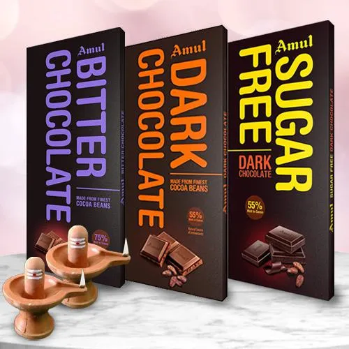 Pleasant Amul Dark Delight of 3 with Decorative Diya