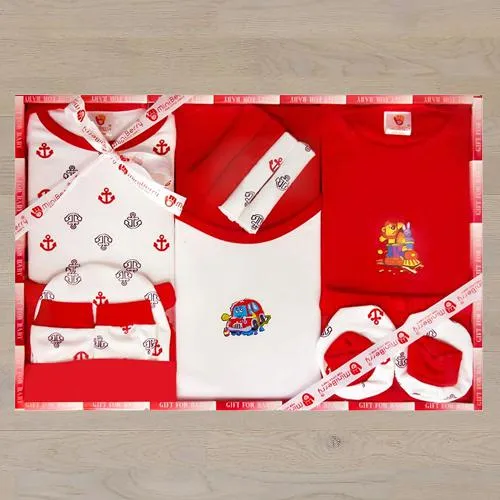 Bring the feeling of happiness by sending this Marvelous New Born Baby Clothing Gift Set into the life of your toddler. The details are as follows: 1. Items: 13 Pcs Clothing Set comprising of 1 Bodysuit, 1 T-Shirt, 1 Long Pants, 1 Bib, A Pair Of Booties, 1 Coordinating Cap, 4 Washcloth, Shorts, Mittens and Towel. 2. Age: Ideal for 0-6 Months 3. Color: Red 4. Fabric Type: Cotton 5. Other Features: 100% pure cotton N Perfect Baby Shower blessing Gift
