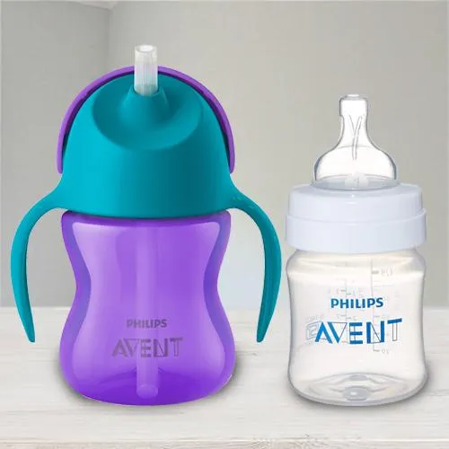 Deck the lives of your child who is closest to your heart with love by sending this Marvelous Philips Avent Straw Cup N Anti Colic Bottle that beautifully conveys the message of your heart to them. The details of the gift are: 1. Items: Philips Avent Straw Cup N Anti Colic Bottle 2. Brand: Philips 3. Age Group: 9 Months+ 4. Color: Assorted Color 5. Material: Plastic 6. Other Features: Its BPA free, easy bend straw cup, reduce colic and fussing and uninterrupted feeding.