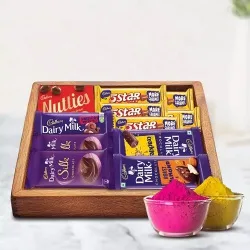 Enjoy Holi festival with friends and family as you gift online Delectable 16 pc Ferrero Rocher Chocolates in Golden Plated Thali with Free Gulal and enhance your celebrations.
