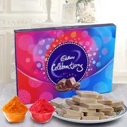 On this Holi, spread the colour of love by gifting this Special Heart Winning Array of Holi Gifts Hamper featuring 750ml Haldiram Khus Syrup, 500gm Kaju Barfi, 200gm Haldiram All in One Chanachur, 2 Pouch of Herbal Gulaal, 4 Bars of Cadbury Dairy Milk and a Happy Holi Greetings Card to your friends and relatives.