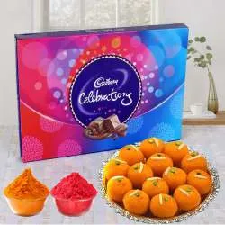 Pamper your loved ones on this occasion of Holi by sending them this Haldirams Ambrosial Wonder Assort and make them feel special, loved and lucky. This delectable Holi Assort exhibits a Bottle of 700 gms Haldirams Khus Syrup, 200 gms Pista Rolls from Haldiram, a Pack of 200 gms Haldirams Soan Papdi, 200 gms Haldirams Bhujiya and Free Herbal Gulal.