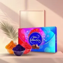 On this special occasion of Holi, enhance the enjoyment of your loved ones by sending online this Tasteful Treat from Haldirams with Chocolates N Free Gulal and uplift the festive mood of this colorful day. This sweets hamper gathers 250 gm Haldirams Soan Papdi (Gross Weight), 250 gm Haldirams Bhujia (Gross Weight), 250 gm Haldirams Kaju Pista Roll (Gross Weight), 250 gm Assorted Dry Fruits (Gross Weight), 5 pcs Homemade Chocolates and 3 pcs Homemade Chocolates in a Heart Shaped Box with free Gulal/Abir Pouch.