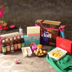 Deliver happiness online by sending this Heartfelt Holi Gift of Haldiram Rasgulla (500 gr), designer Pooja Thali, Pichkari N Free Herbal Gulal spreading the colours of love.