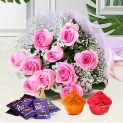 Make others feel wonderful as you treat them with this Scrumptious Assorted Sweets from Bhikaram in a very very special way on this Holi. This hamper comes with Kaju Barfi, Kesar Peda, Desi Ghee Laddoo n Mawa Gilori (1 kg: Gross Weight) and Free Organic / Herbal Gulal (2 pkts).
