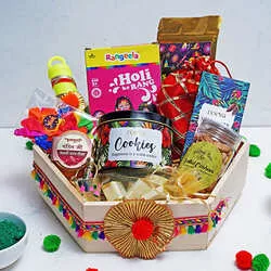 Enjoy a fun-filled and colorful Holi by gifting this Enjoyable Holi Gift Bag of Danish Cookies with Gulabjamun n Chocolates and making the recipients very happy. This gift bag has Holi assortments has -