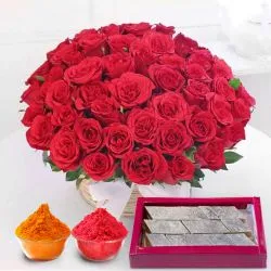Enjoy Holi by sending this Fun-Filled Holi Sweets N Dry Fruits Hamper with Free Gulal to your friends and relatives. This gift hamper contains:
