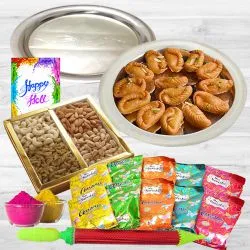 Celebrate Holi by ordering online this Classic Delicacies with Organic Colors in Pink Floral Box for your near and dear ones. This Holi special box contains: