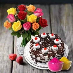 Nice Wrapped Gift Box containing 1 Kg Mixed Dry Fruits i.e. Raisin, Pistas, Cashews, Almonds, Wallnuts with free Gulal/Abir Pouch.