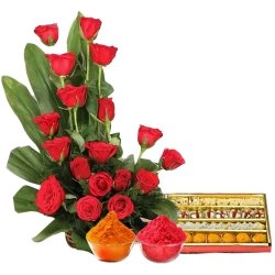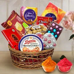 Create colorful moments for your near and dear ones with online delivery of Pleasurable Holi Occasion Chocolate Basket and make them feel very special. This Chocolate Basket is teamed with 2 pc Cadbury Diary Milk Silk, 2 pc Temptation, 2 pc Cadbury Diary Milk Roast Almonds, 2 pc Cadbury Diary Milk Fruits N Nuts, 2 pc Cadbury Diary Milk Crackle, 2 pc Cadbury Bournville, 4 pc Ferrero Rocher Chocolates, Assorted Dry Fruits with Free Gulal.