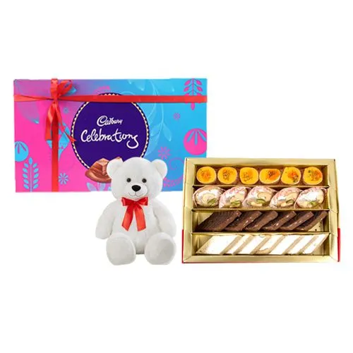 Buy Assorted Sweets (250g) from G Pulla Reddy with a 6in Teddy N Cadbury Celebration Chocolate Pack (126g) N deliver on the same day to make your dearest persons happy. (Only Available at Hyderabad)