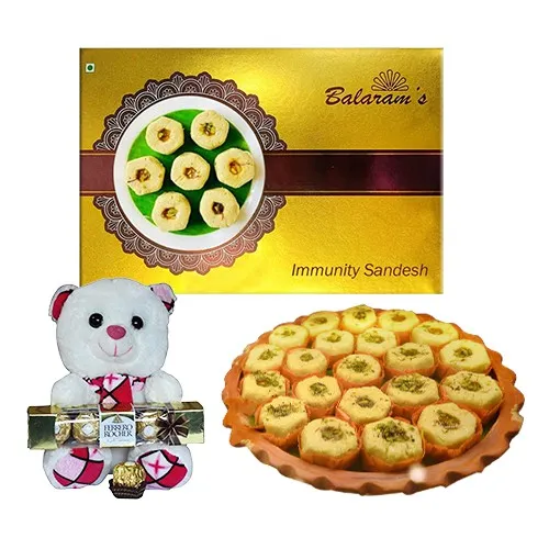 Send 12pc Immunity Sandesh from Balaram Mullick with a Teddy (6in) N 4pc Ferrero Rocher Chocolate Pack to wish your loved ones on their special days. (Only Available at Kolkata)