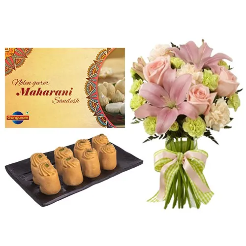 Nolen Gurer Maharani Sandesh from Ganguram with Mixed Flowers Bouquet