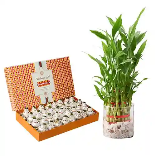 Bikanervala Kaju Kalash with 3 Tier Lucky Bamboo Plant