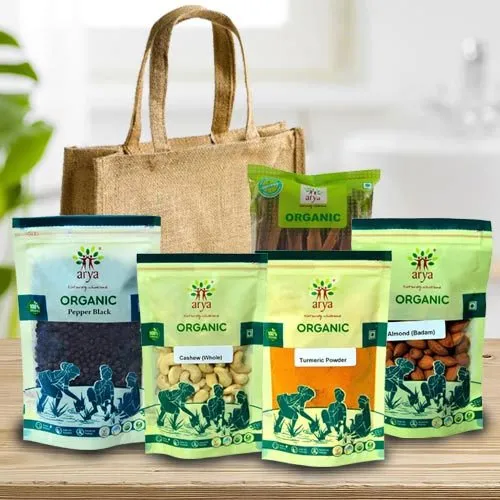 Feel great by sending this Mothers Day gift of Ecstatic Immunity Booster Organic Hamper to your mother and fetch her tightest hug. This Gift Hamper consists of - a) Herbal Turmeric Powder (100 gr.) b) Dabur Honey (50 gr.) c) Herbal Cinnamon (100 gr.) d) Organic Whole Black Pepper (100 gr.) e) Organic Whole Cashew (100 gr.) f) Organic Almonds (100 gr.) g) Reusable Jute Bag