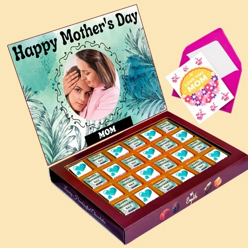 Just click and send this Rich N Creamy Handcrafted Chocolates in Customize Box to convey your eternal affection for your mother on this Mothers Day. This is a gift of Premium 24 pieces Assorted Flavour chocolates with Personalized Name - Photo and Mothers day theme Digital Print On box and on Chocolates With Combo Greetings Card.