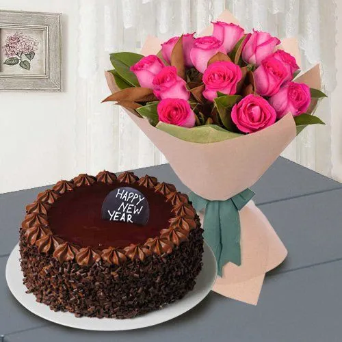 Gift this Bouquet of 12 Red Roses with a 1/2 Kg Chocolate Cake to your loved ones and make them feel special even in your absence.