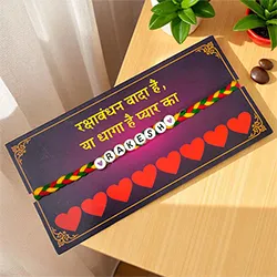 This is a gift of : • A Bhaiya Bhabi Rakhi Set (BBS9562) • Complimentary Roli Tika N Chawal • Complimentary Message Card