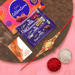 Celebrate the spirit of Raksha Bandhan by ordering for the people you love, this Lovely Sweets with Bhaiya Bhabhi Rakhi adorned with a Rakhi, Roli, Tilak and Chawal free of cost.