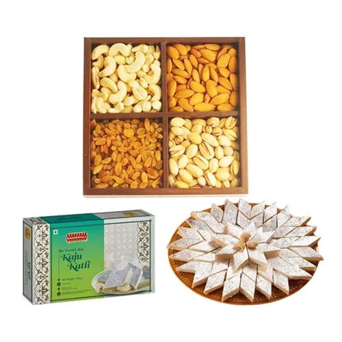 Let others feel happy as you deliver them Kaju Katli (500 gms) from Bikanervalas with Mixed Dry Fruits (250 gms) with your love and affection. (Only Available at Ahmedabad)