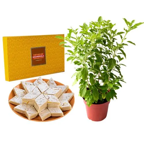 Kaju Katli from Bikanervalas with Tulsi Plant