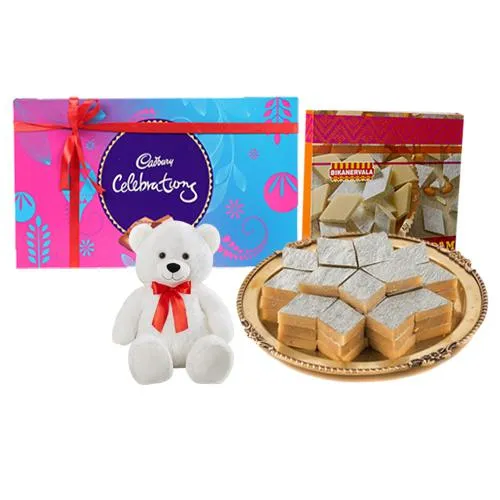 Buy Badam Katli (500 Gms) from Bikanervalas with 6in Teddy N Cadbury Celebration Chocolate Pack (126g) N deliver on the same day to make your dearest persons happy. (Only Available at Ahmedabad)