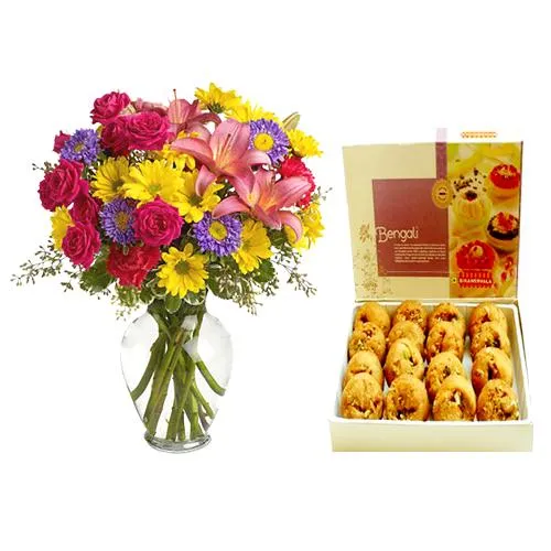 Balushahi from Bikanervalas with Mixed Flower Arrangement