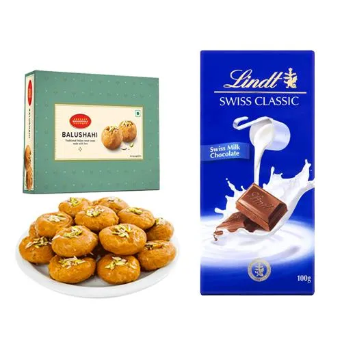 Buy Balushahi (500 Gms) from Bikanervalas with Lindt Excellence Chocolate Bar (100g, Milk) N deliver on the same day to make your dearest persons happy in Ahmedabad (Only Available at Ahmedabad)