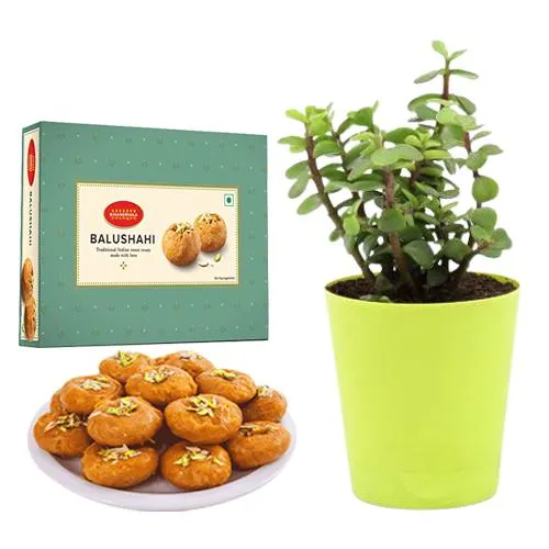 Balushahi from Bikanervalas with Jade Plant in Plastic Pot