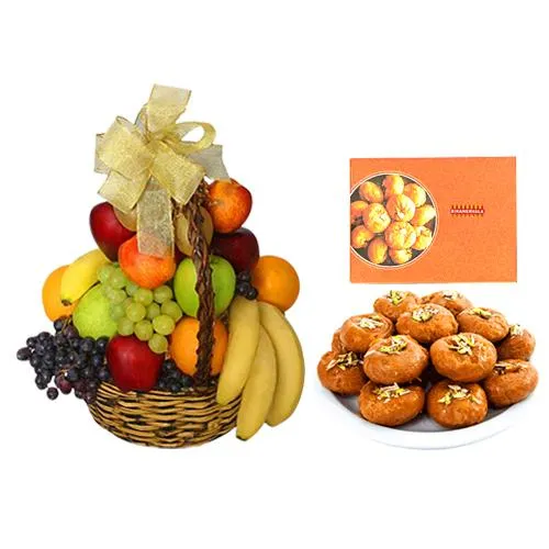 Balushahi from Bikanervalas with Fresh Fruit Basket