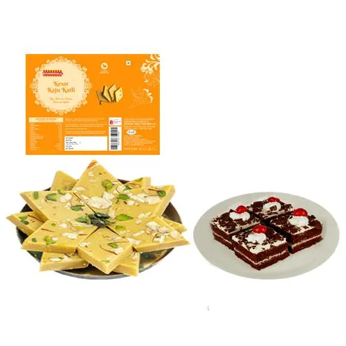 Shop Online for Kaju Kesar Katli (500 Gms) from Bikanervalas with 4pcs Chocolate Pastry and send it to your family and friends. (Only Available at Ahmedabad)