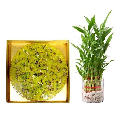 Buy Online to Send Badam Rotlo (500g) from Kandoi Bhogilal Mulchand with 3 Tier Lucky Bamboo Plant for your known N loved people. (Only Available at Ahmedabad)