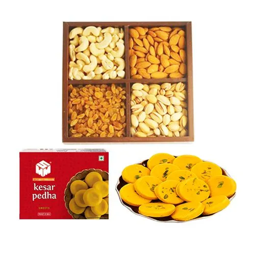 Shop Kesar Mewa Peda - 250 gm from Mohanlals Mithaiwala with Assorted Dry Fruits (500g gross wt.) to wish your loved ones on their special days. (Only Available at Ahmedabad)