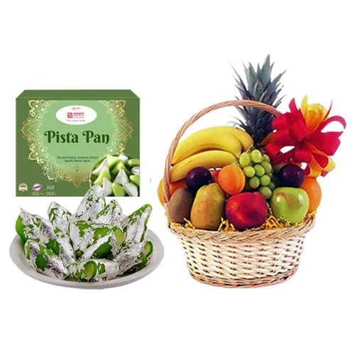 Buy Online to Send Pista Pan (500 Gms) from Kandoi Bhogilal Mulchand with 2kg Fresh Fruit Basket for your known N loved people. (Only Available at Ahmedabad)