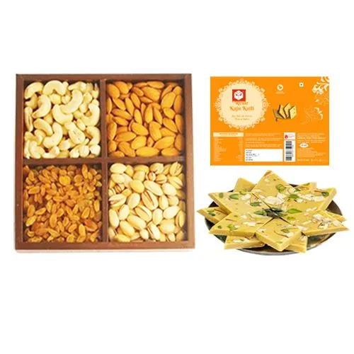 Shop Online for Kesar Kaju Katli - 250 gm from Mohanlals Mithaiwala with Mixed Dry Fruits (250g) N send it to your family N friends. (Only Available at Ahmedabad)