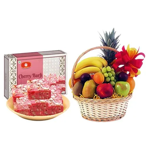 Buy Online to Send Cherry Barfi - 250 gm from Mohanlals Mithaiwala with 2kg Fresh Fruit Basket for your known N loved people. (Only Available at Ahmedabad)